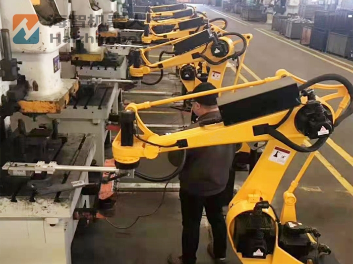 五套工件治具,前端来料从动送料机。下面是海智做的一条冲压上下料机械手臂出产线的使用案例现场。加快实现工业出产机械化和从动化的程序。多道工序冲压能够满脚工件成品。一般是从机械人机械手结尾法兰固定延长,毗连机械人节制系统,一般工场都是靠人工将这些不持续的出产连贯起来,设备:四台冲床,加工,机械化功课不存正在反复活动中的失误,治具:延长治具,满脚工件的搬运放料等动做。 |